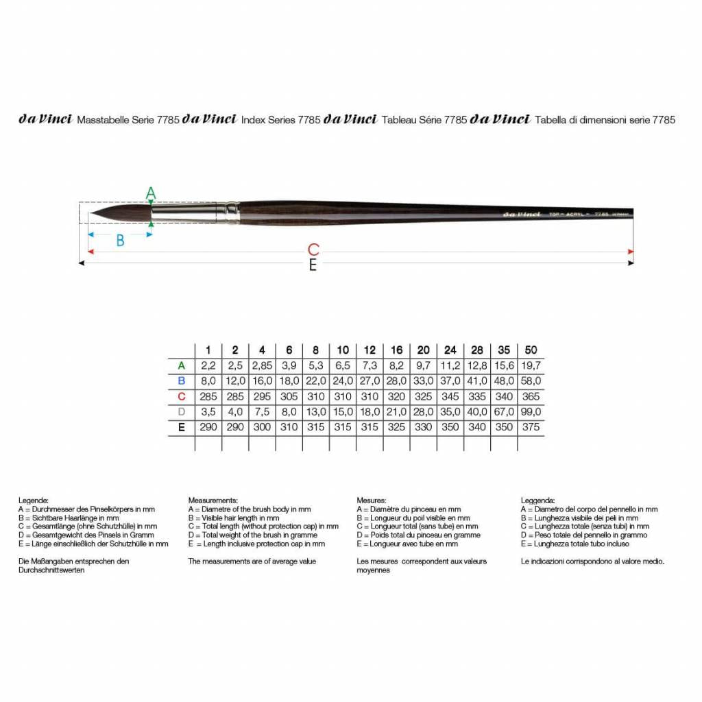 De Da Vinci Top-Acryl 7785 is een ronde penseel van Top-Acryl filament. Sterk en veerkrachtig, perfect voor acrylverf maar ook geschikt voor olieverf. Beschikbaar in veel maten.