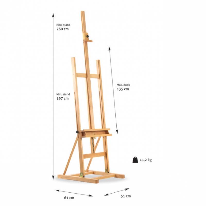 De ezel is gemaakt van stevig beukenhout en een investering voor meerdere jaren. De ezel beschikt ook over een bak waar je penselen en andere voorwerpen in kwijt kunt.