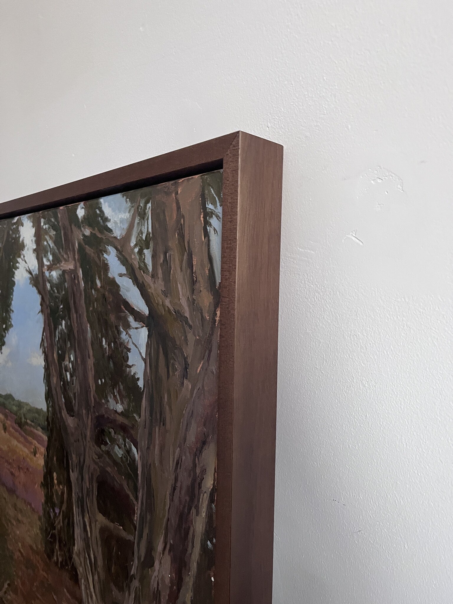 Deze donker eiken-look baklijst is gelakt in een zeer mooie, mat-halfglans donker walnoot tint waarbij de houtnerf nog zichtbaar is. Doordat de nerf en de mooie structuren van het Ayous hout lichtelijk doorschijnen heeft elke lengte van de lijst een eigen gezicht, elke lijst is daardoor uniek!