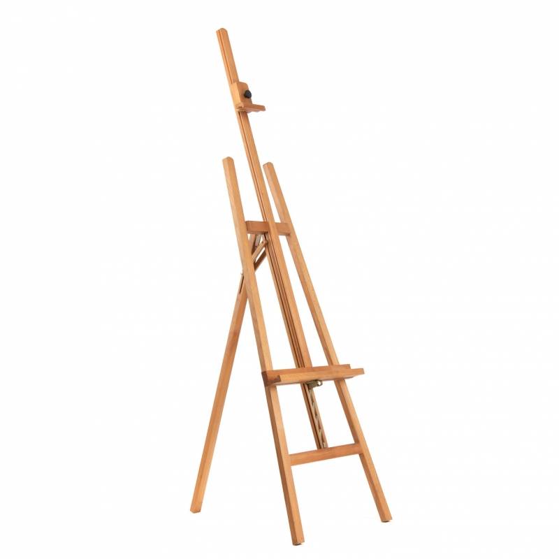 Hij is uitgerust met een verstelbeugel waar je makkelijk de hoogte mee kunt instellen. Een klein nadeel van een driepoot ezel is dat hij niet heel stabiel is wanneer er geschilderd wordt op grotere doeken, mocht je de ezel niet vaak verplaatsen dan raden wij de NR31 aan; de goedkoopste ezel met een H-voet. (een stuk stabieler)