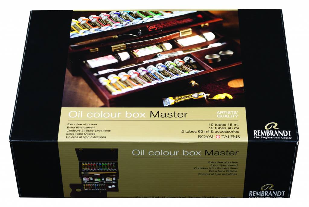 Rembrandt Olieverf houten kist set Master | 10 x 15 ml + 12 x 40 ml + 2 x 60 ml + accessoires