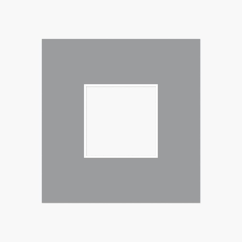 Deze grijze museum kwaliteit passe-partout met witte kern heeft een mooie gestructureerde zuurvrije top-laag. Het gat van de passe-partout wordt schuin uitgesneden.