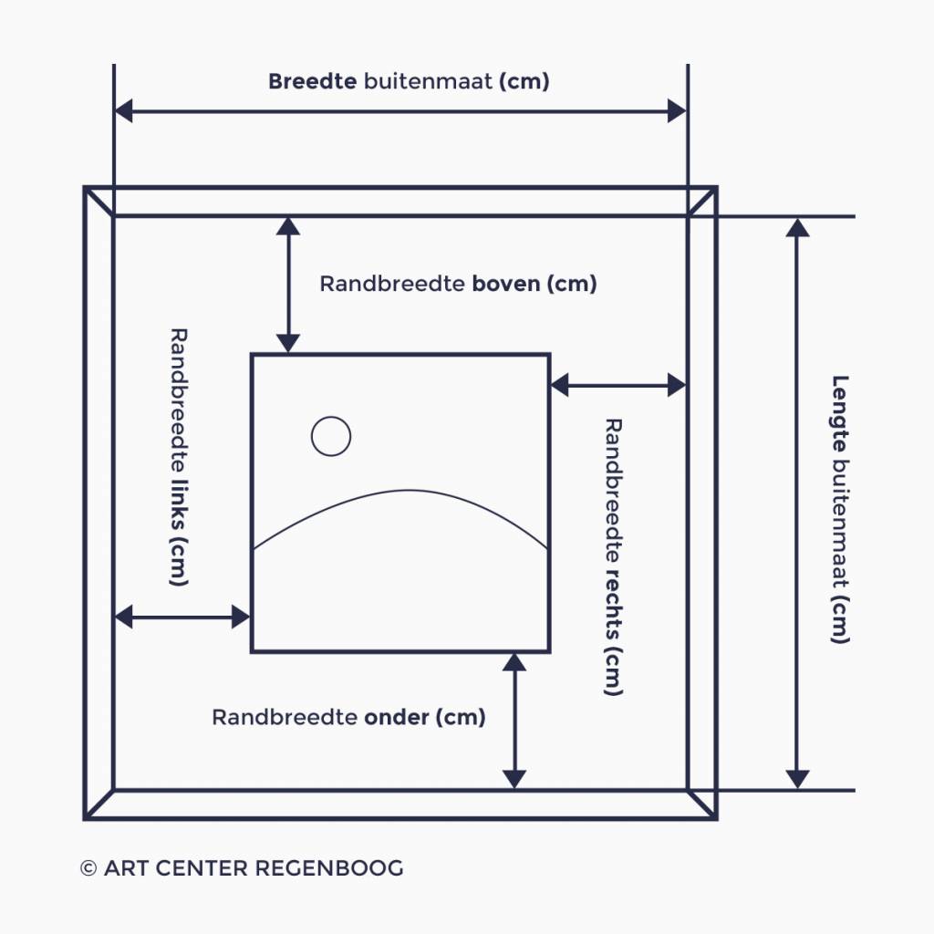 Heb je liever geen gat in jouw passe-partout? Vul dan bij alle randbreedtes 0cm in. Een dubbele passe-partout kan een mooi en professioneel effect creëren in de hoeken, je besteld een dubbele passe-partout door een extra passe-partout te bestellen waarvan de randbreedtes 0.5cm kleiner zijn, deze extra passe-partout lijm je vervolgens op de onderste passe-partout met houtlijm.