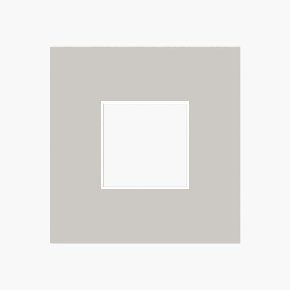 Deze licht grijze museum kwaliteit passe-partout met witte kern heeft een mooie gestructureerde zuurvrije top-laag. Het gat van de passe-partout wordt schuin uitgesneden.