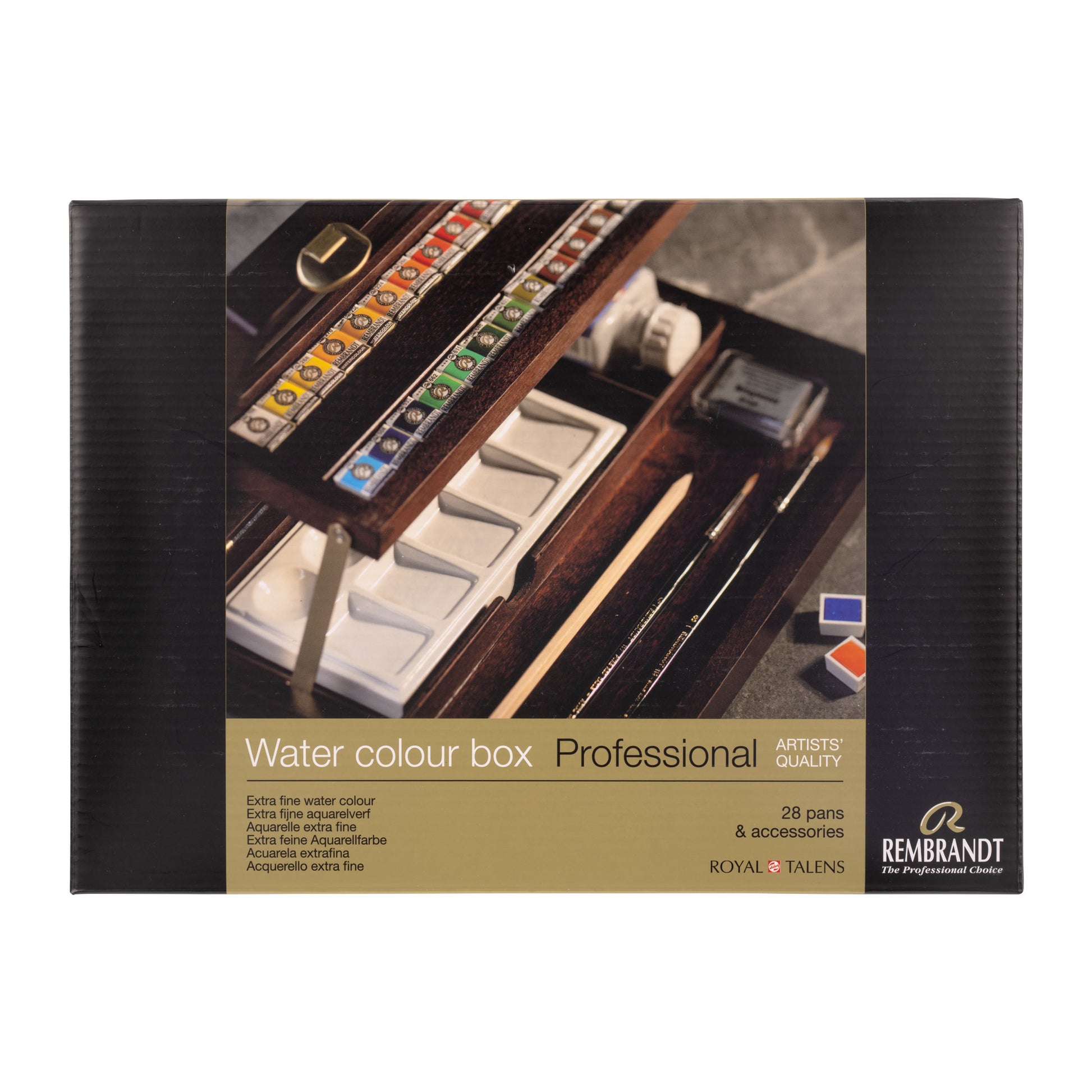 Rembrandt Aquarelverf houten kist set Professional | 28 napjes + accessoires